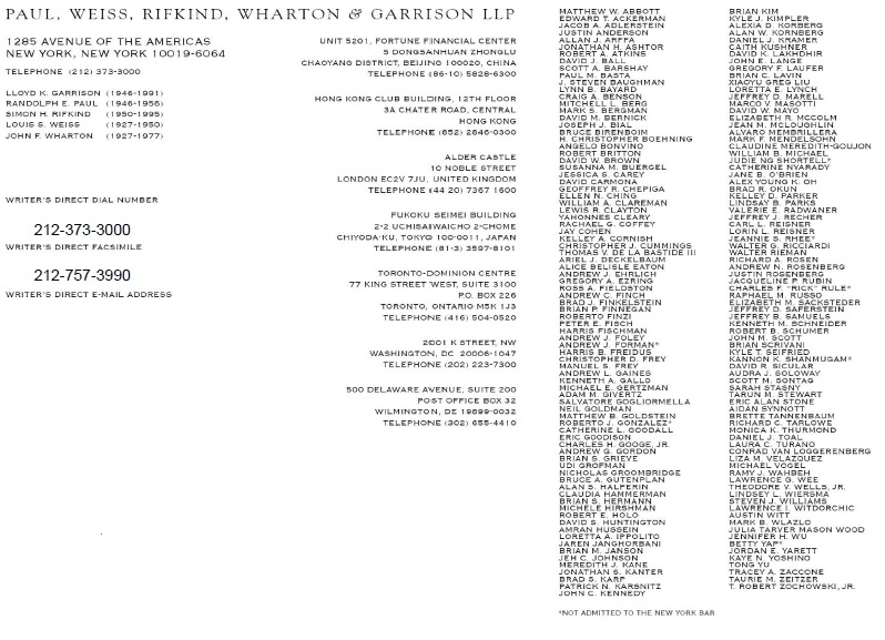 | PAUL, WEISS, RIFKIND, WHARTON & GARRISON LLP |