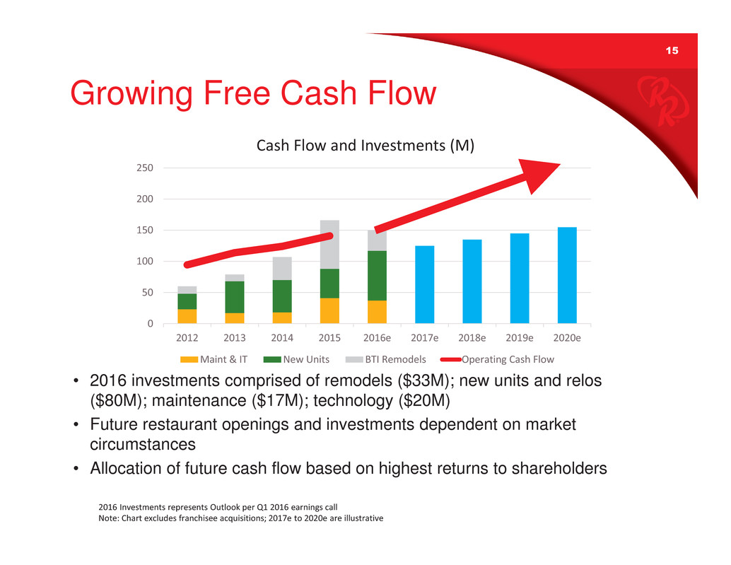 15 • 2016 investments comprised of remodels ($33M); new units and relos ($80M); maintenance ($17M); technology ($20M) • Future restaurant openings and investments dependent on market circumstances • Allocation of future cash flow based on highest returns to shareholders Growing Free Cash Flow ? ?? ??? ??? ??? ??? ???? ???? ???? ???? ????? ????? ????? ????? ????? ??????????????????????????? ?????? ??? ????????? ???????????? ??????????????????? ????????????????????????????????????????????????????????????? ??????????????????????????????????????????????????????????????????????????????