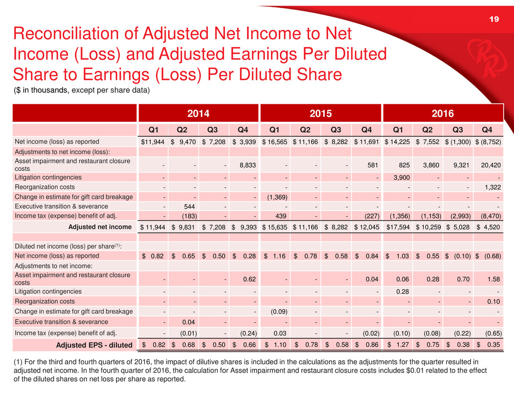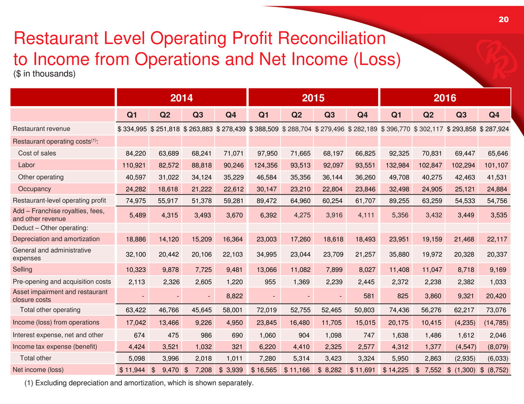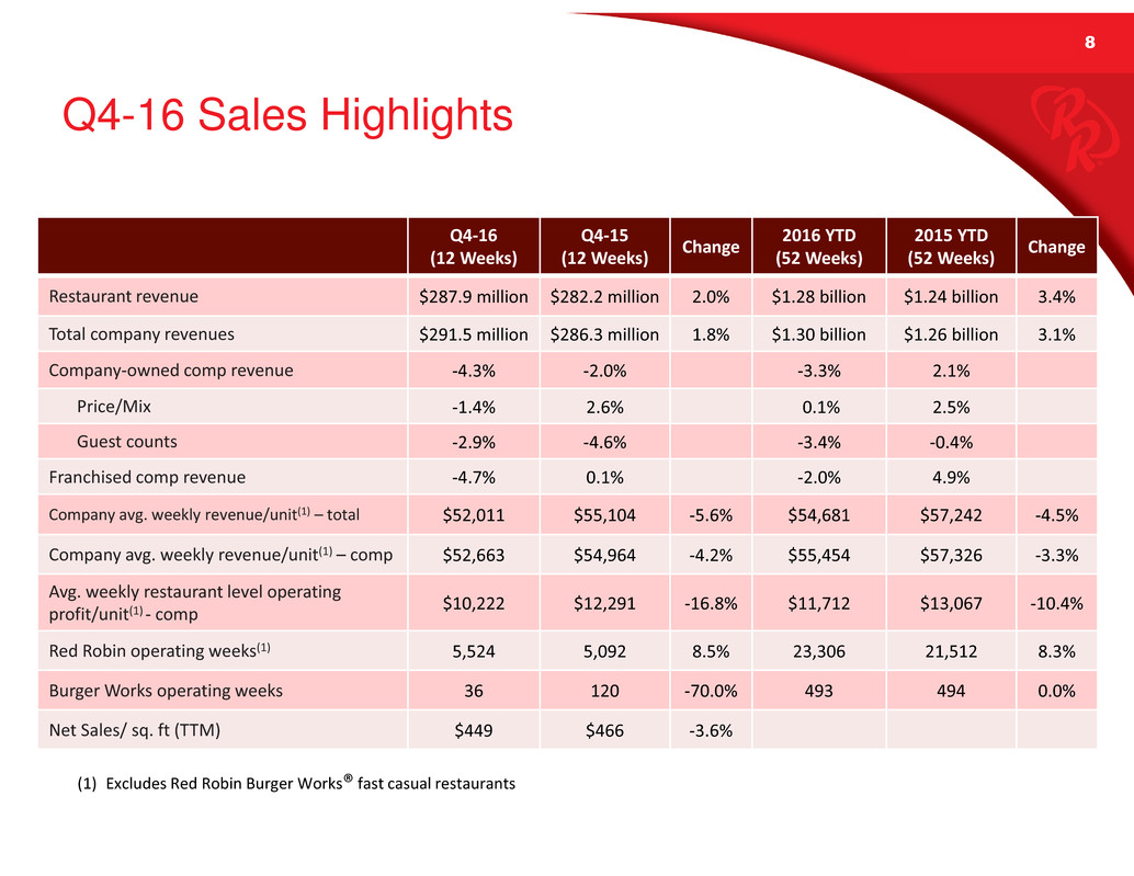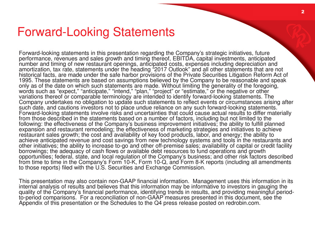 Appendix of this presentation or the Schedules to the Q4 press release posted on redrobin.com.