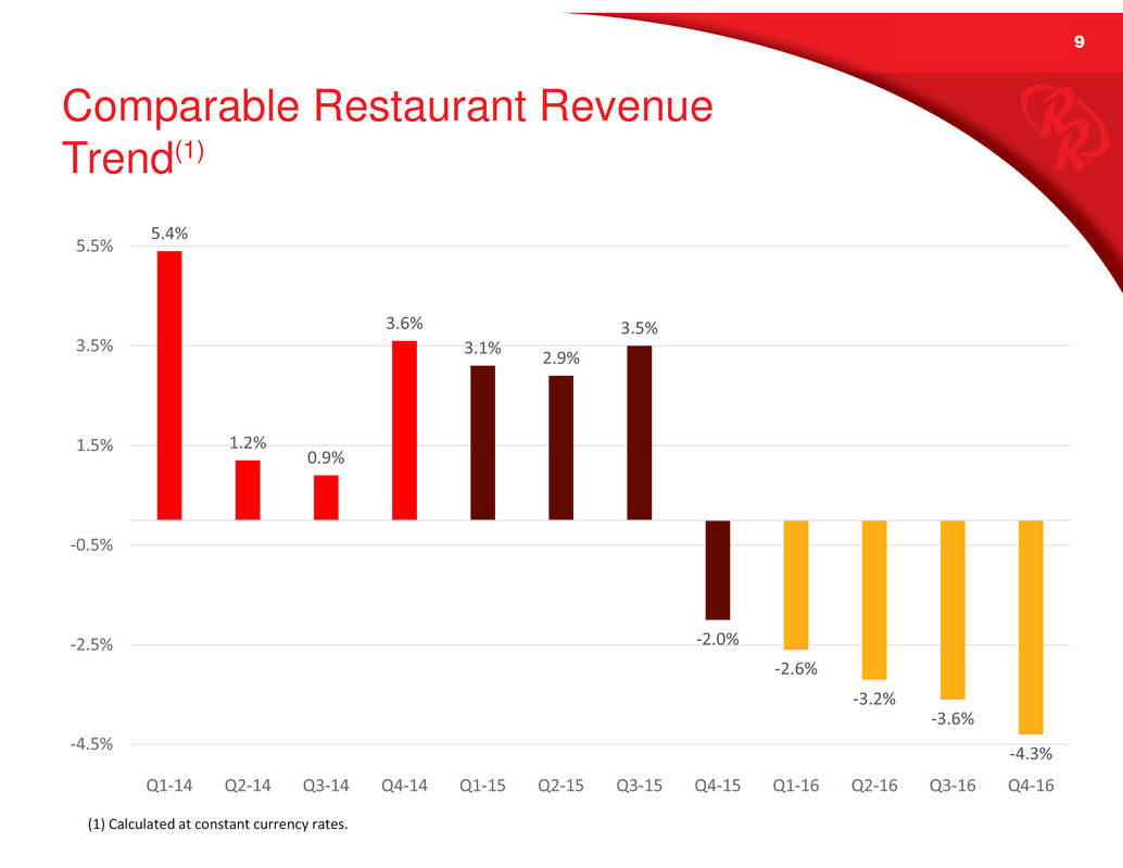 • Comparable restaurant revenue down 4.3%