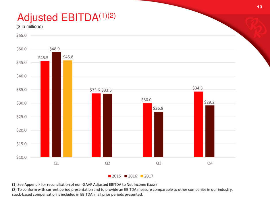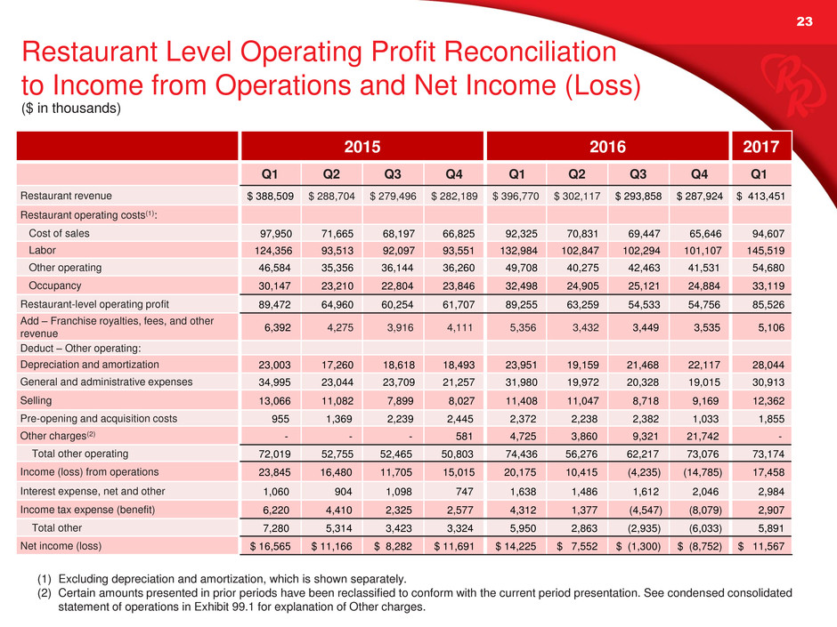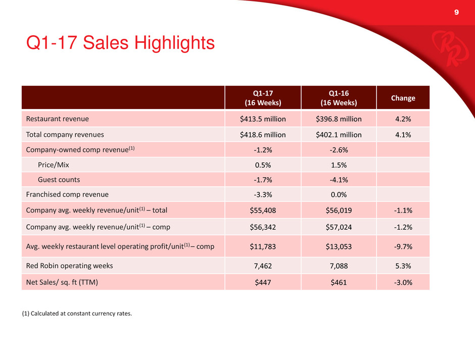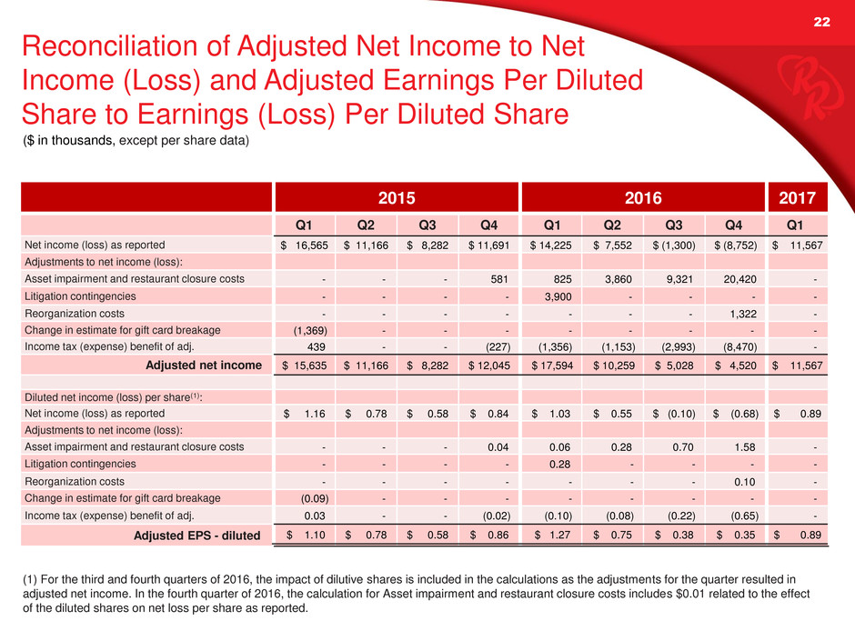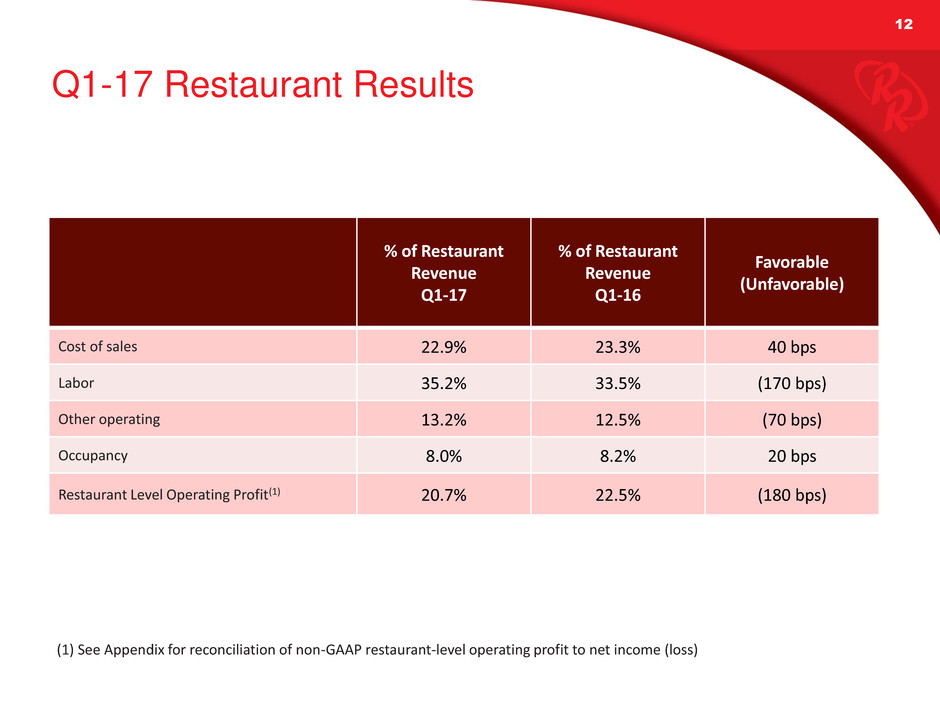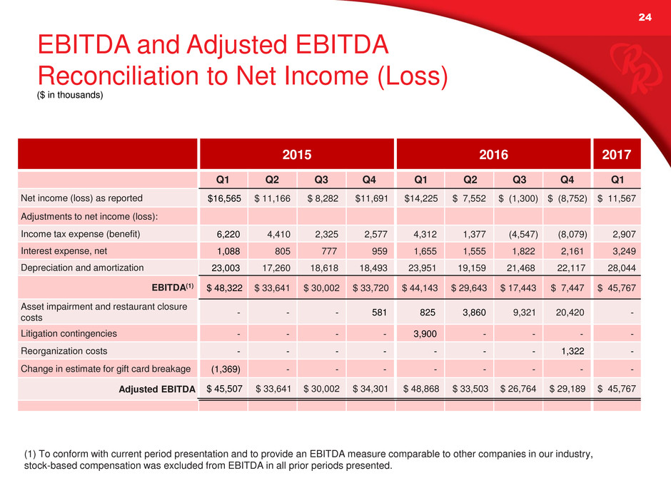 Appendix of this presentation or the Schedules to the Q1 press release posted on redrobin.com.