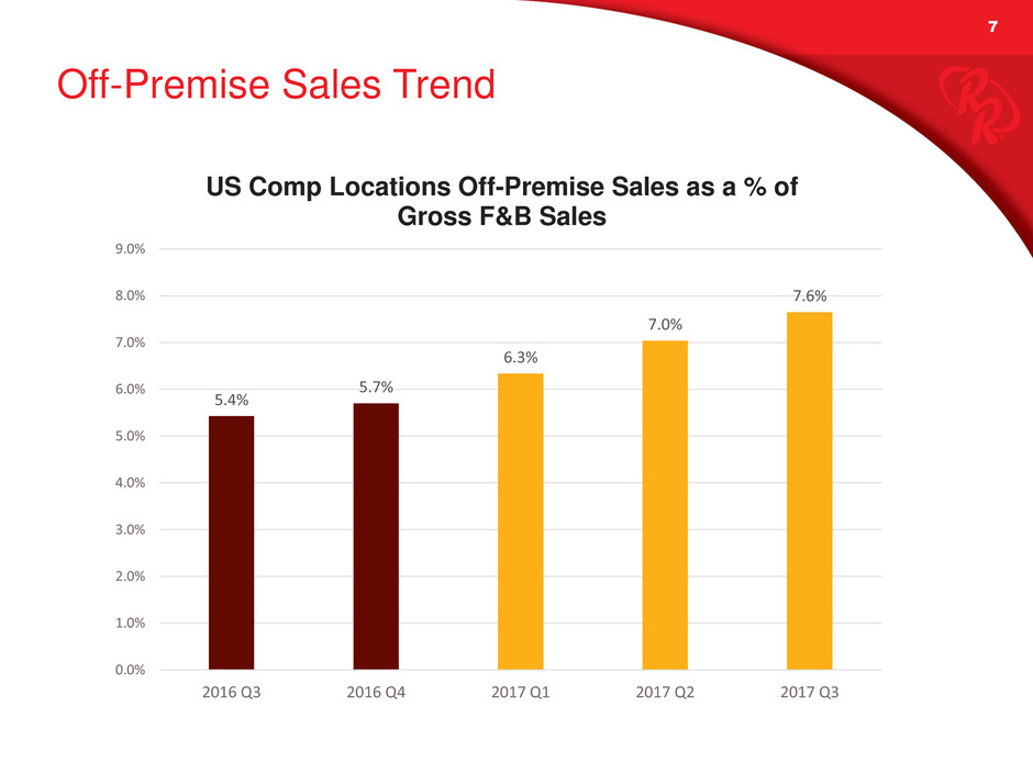 • Off-premise revenues increased to 7.6% of