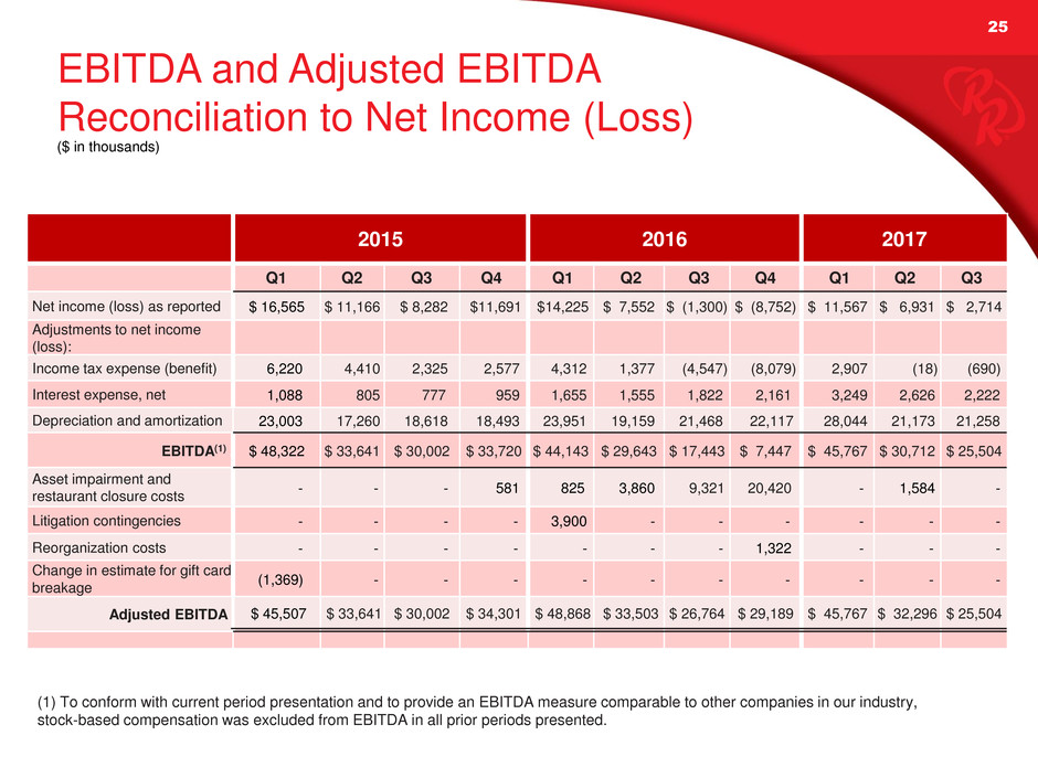 Appendix of this presentation or the Schedules to the Q3 press release posted on redrobin.com.
