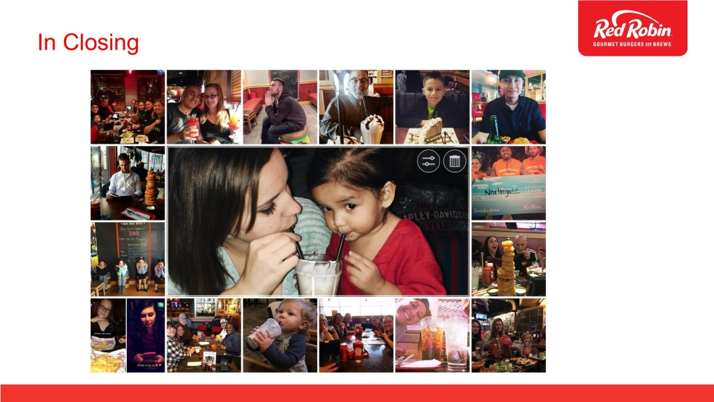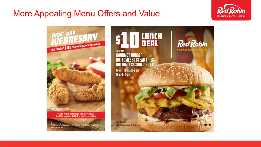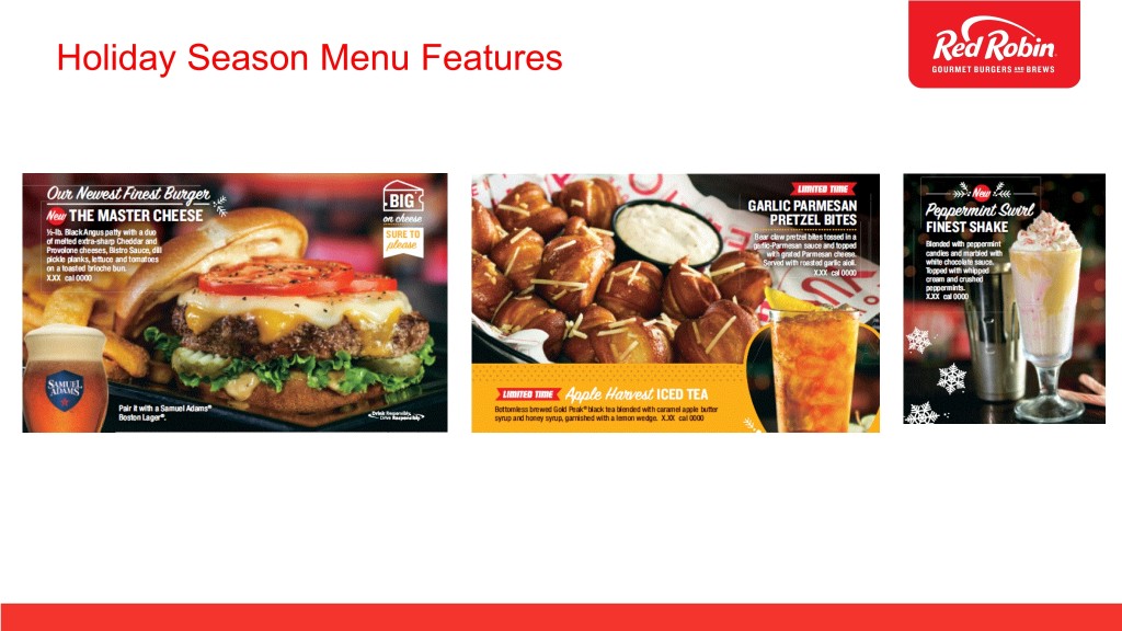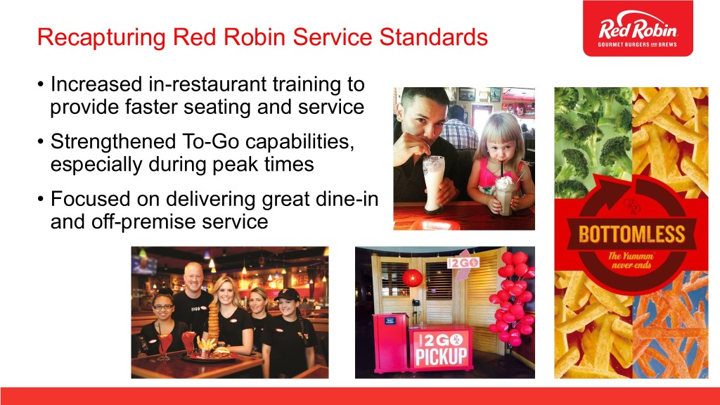Recapturing Red Robin Service Standards • Increased in-restaurant training to provide faster seating and service • Strengthened To-Go capabilities, especially during peak times • Focused on delivering great dine-in and off-premise service