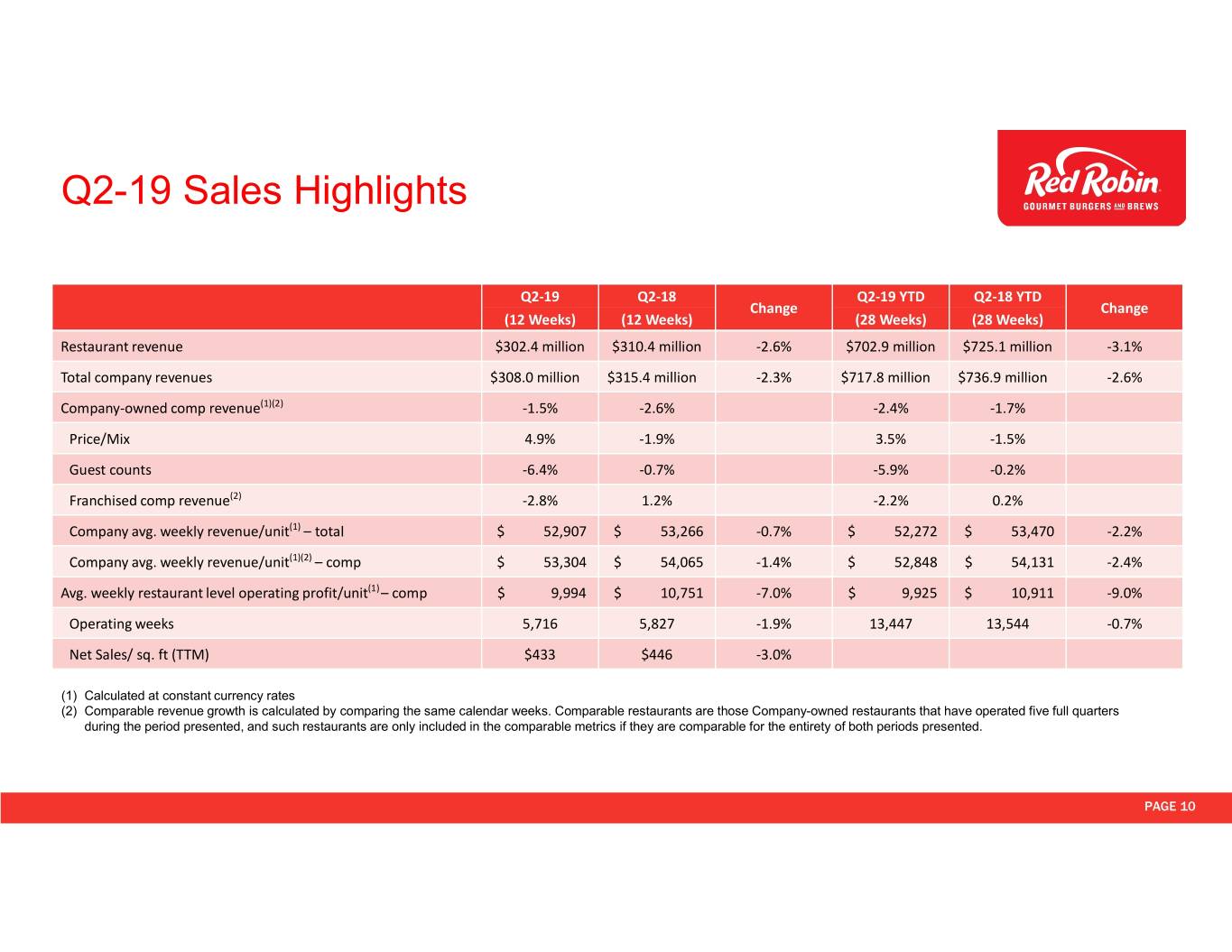 Comparable Restaurant Revenue Trend(1) 5.0% 4.0% 3.0% 2.7% 2.0% 1.0% 0.5% 0.0% -0.1% -1.0% -0.9% -1.2% -2.0% -1.5% -3.0% -2.6% -3.4% -3.3% -4.0% -5.0% -4.5% Q1-17 Q2-17 Q3-17 Q4-17 Q1-18 Q2-18 Q3-18 Q4-18 Q1-19 Q2-19 (1) Calculated at constant currency rates PAGE 9