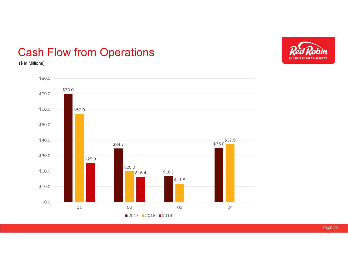 Cash Flow from Operations ($ in Millions) $80.0 $70.0 $70.0 $60.0 $57.0 $50.0 $40.0 $37.5 $34.7 $35.0 $30.0 $25.3 $20.0 $20.0 $16.4 $16.9 $11.8 $10.0 $0.0 Q1 Q2 Q3 Q4 2017 2018 2019 PAGE 20
