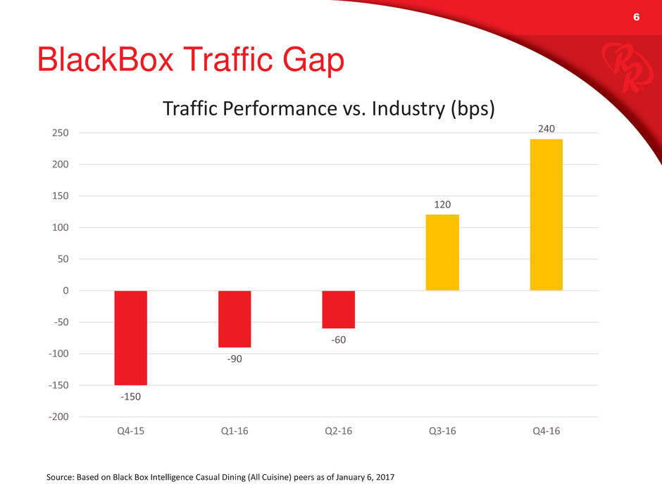 Source: Based on Black Box Intelligence Casual Dining (All Cuisine) peers as of January 6, 2017