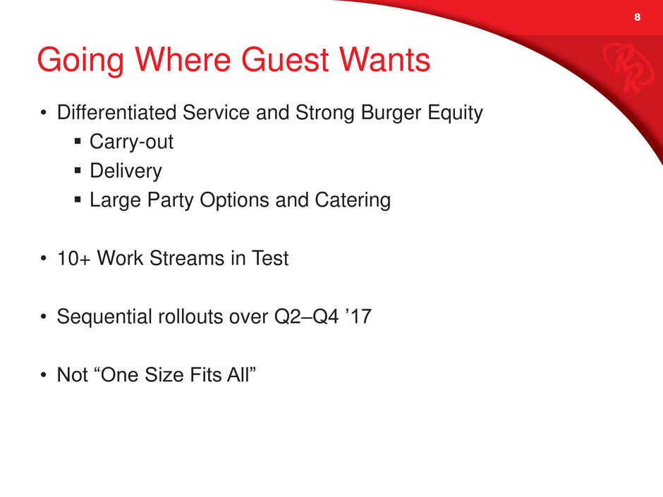 limited to, those under the headings “Game is Changing,” “Going Where Guest Wants,” “Regaining Operational Edge,”